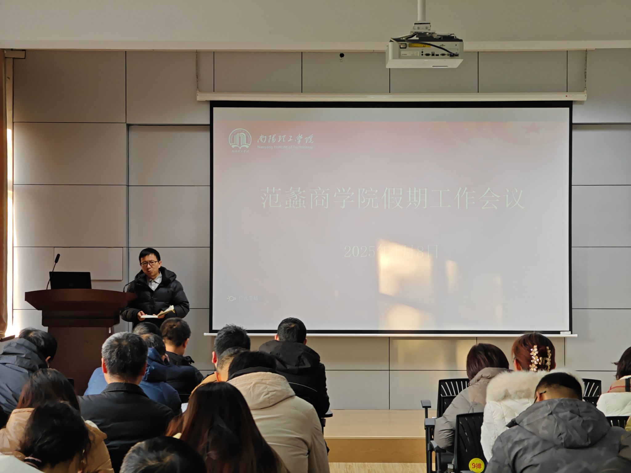 本网讯(特约记者/王健平)2025年1月8日上午,范蠡商学院在215会议室召开假期工作会议,学院全体教师参加会议。会议由学院党委书记闫合 占主持。