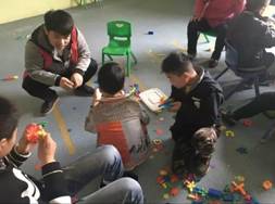 恰逢阴雨天气,志愿者们在教室内辅导孩子们写作业,一对一和孩子们进行交流。当一道道难题被解决时,孩子们脸上露出了愉快的笑容。大家陪孩子们一起玩游戏,搭积木,忙碌而又迅速。志愿者和弘玉的老师一起教孩子们颂读古诗,带领孩子体会古典文化的美。志愿者和孩子们的欢声笑语充满了整个教室,志愿者们也收获了满满的幸福。