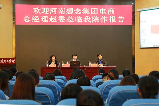 王一平致辞。她首先向在场师生介绍了我校优秀毕业生赵雯的工作成绩及想念集团近年来的成就与发展,她希望在场学生能够学习赵雯刻苦努力、开拓创新的精神,努力学习好专业知识,扎实专业技能;最后,她说,希望想念集团能够与电商学院深入合作,共同发展。