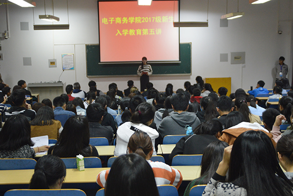 本网讯(通讯员/周东盈)10月27日,电子商务学院在14教106教室举办2017级学生入学教育第五讲,电子商务学院教研处主任陈连山,17级导员张雨爽出席大会,全体17级学生参加会议。
