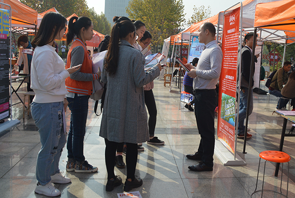 本网讯(通讯员/冯大清)为了给学生提供良好的就业平台,增加学生的就业针对性与时效性,10月27日,电子商务学院联合文法学院、音乐学院和经济管理学院在我校齐贤广场举办2017冬季招聘会。电商学院党总支书记逯忆、14级导员赵杰亲临现场指导学生应聘,百余名学生前来应聘。此次招聘会吸引近六十家企业前来招聘。