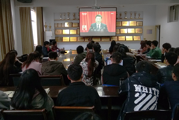 师生党员代表认真聆听习近平总书记在中国共产党第十九次全国代表大会开幕式上的报告,简要了解党的十八大以来取得的改革开放和社会主义现代化建设的历史成就和特色社会主义进入新时代的国情,并对党在港澳台工作方面取得的新进展和全面反腐、综合治党等方面取得的显著成绩进行详细了解。