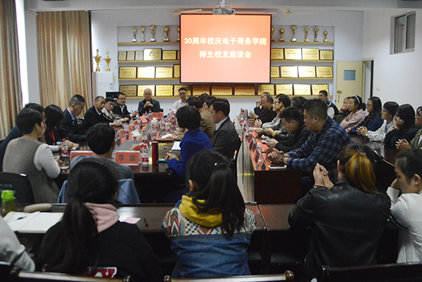 本网讯(通讯员/张瑞皓)10月6日下午,电子商务学院在9号教学楼304会议室举办30年校庆师生校友座谈会。副校长张铟应邀出席,电商学院院长王一平,副院长吴战勇、郭永奇,各地返校的优秀校友和电商学院师生代表参加。座谈会由电商学院党总支书记逯忆主持。