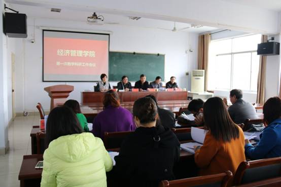 姬定中,李晓霞分别就2017教学、科研工作要点进行分析汇报。会后教师参与讨论《经管学院教师教学工作手册》、《经管学院课堂教学基本规范》、《核心课程建设标准》、《经济管理学院优秀教研室评选办法》以及《2017年教学工作要点》《2017年科研工作要点》,拉开了经管学院2017年教学科研工作的序幕。