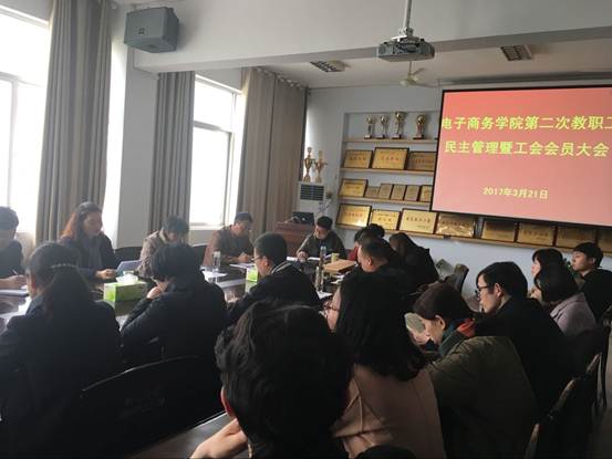 3月21日下午,电子商务学院在9号教学楼304会议室召开第二次教职工民主管理暨工会会员大会,选举产生电商学院第二届分工会委员会。校工会副主席李文红出席会议并讲话,电商学院院长王一平、党总支书记逯忆分别做行政工作报告和工会工作报告,电商学院全体教职工及6名学生代表参加会议。会议由逯忆主持。