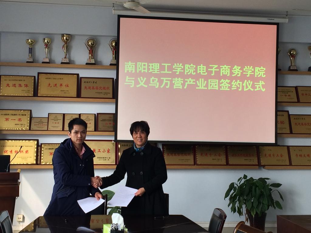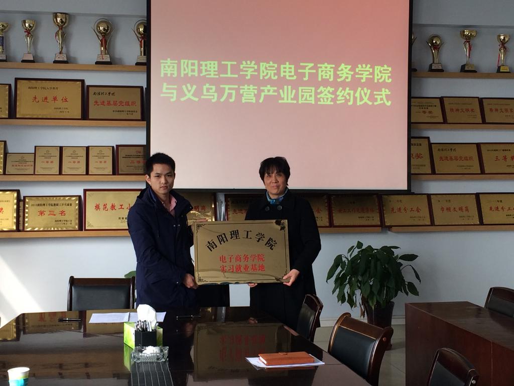 随后,王一平与杨学林签署了合作协议,并授“电商学院实习就业基地”牌。