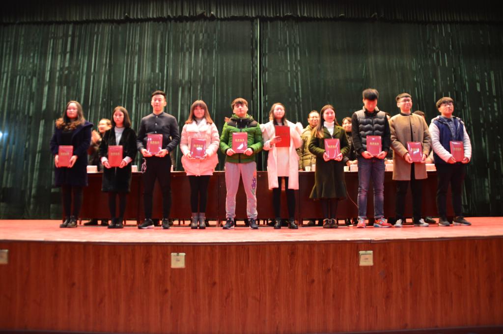 会议首先由吴战勇宣读毕业实习“优秀个人”、“先进个人”名单,郭永奇宣读“金牌客服”、“优秀客服”名单。120名获奖学生依次上台领取证书。