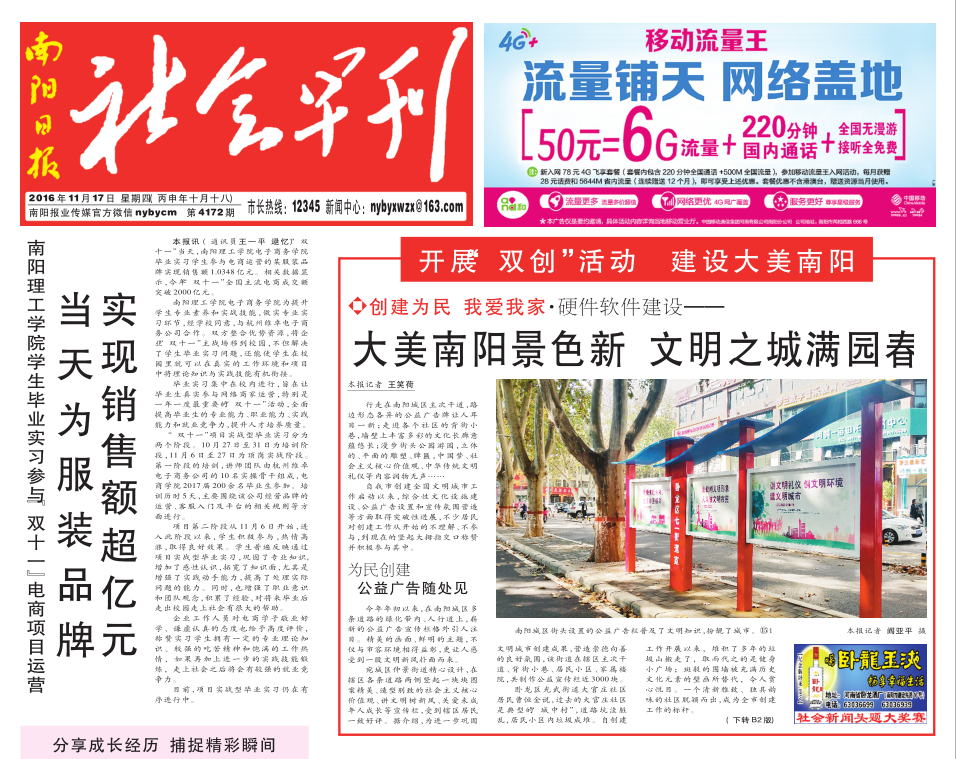 南阳日报社会早刊讯 (通讯员王一平 逯忆)“双十一”当天,南阳理工学院电子商务学院学生参与电商运营的某服装品牌实现销售额1.0348亿元。相关数据显示,今年“双十一”全国主流电商成交额突破2000亿元。