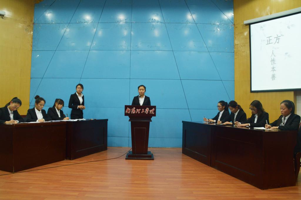 接着,“人性本善还是人性本恶”为论题的辩论赛把讲座推向高潮,李水生等同学的朗诵在活跃气氛的同时,使同学们对于道德有了更深刻的认识。最后,学生会分团委副书记刁楚红带领同学们隆重宣誓,活动结束。