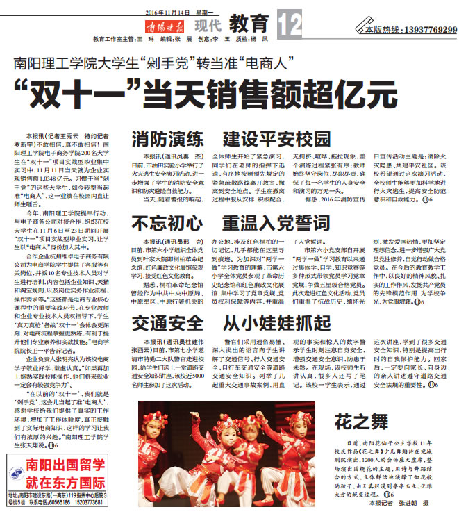 南阳晚报讯(记者王秀云 特约记者罗新宇)不敢相信,真不敢相信!南阳理工学院电子商务学院200名大学生在“双十一”项目实战中,11月11日当天就为企业实现销售额1.0348亿元。习惯于当“剁手党”的这些大学生,如今转型当起准“电商人”,这一业绩在校园内直让师生咂舌。