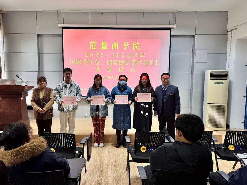 为表彰在学业、品德、实践等方面表现突出的学生,激励广大学生以他们为榜样,范蠡商学院于2025年3月14日在1教1215教室隆重举行了2023-2024学年国家奖学金、国家励志奖学金证书颁发仪式。学院党委副书记李冬生,资助专干张煜梵及国家奖学金、国家励志奖学金获得者参加了此次发放仪式。