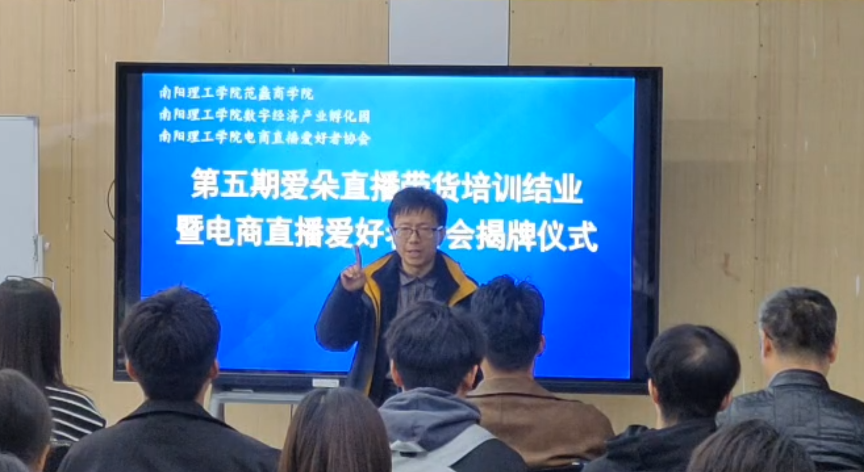 会上举行了南阳理工学院电商直播爱好者协会揭牌仪式。协会会长安俊丞同学发言,电商直播爱好者协会旨在搭建面向我校各学院电商直播爱好者活动的平台,共享优势资源,组织高层次培训和实践项目,开展电商直播活动,丰富大学生活。