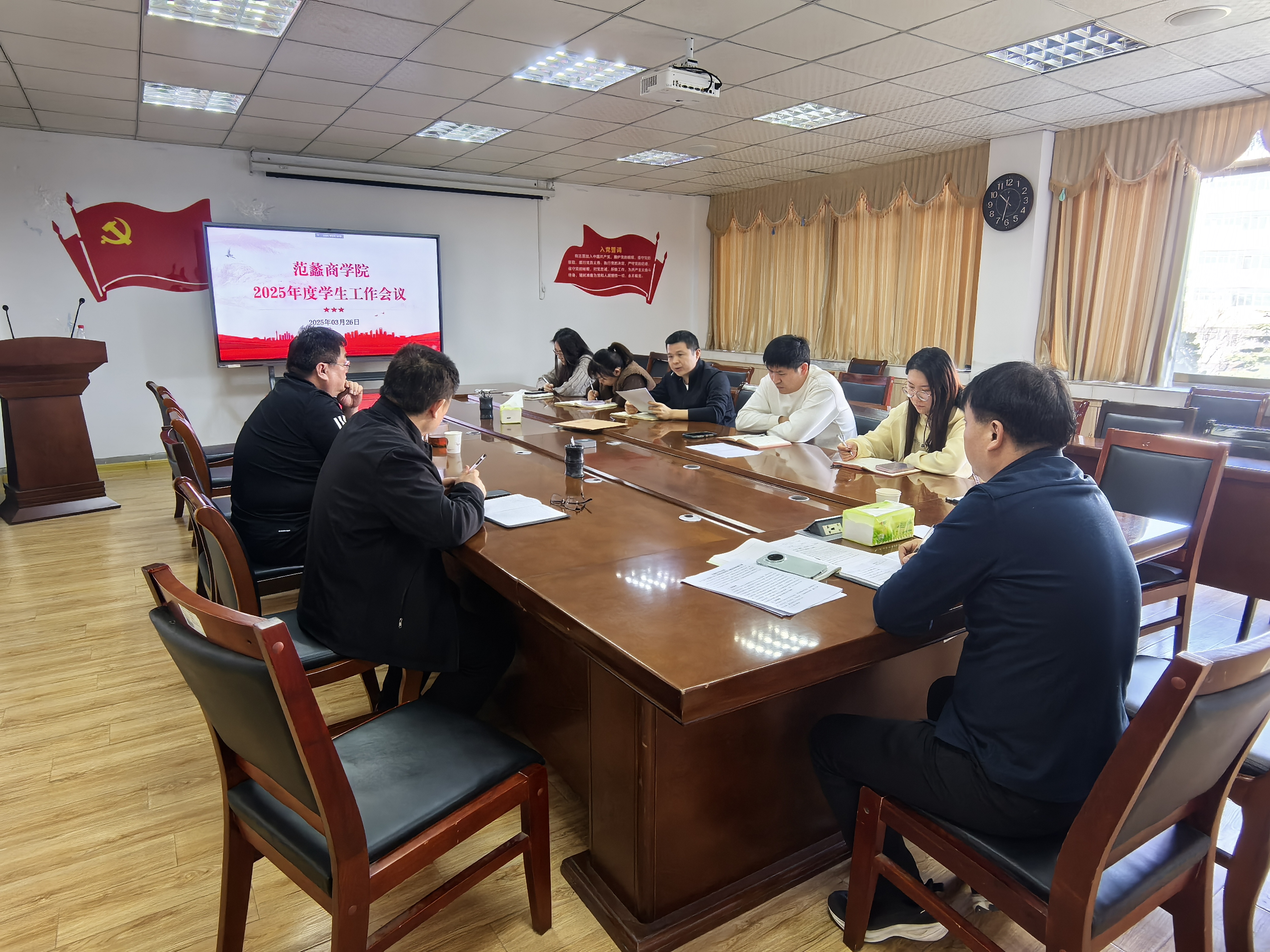 本网讯(特约记者/王健平)3月26日,范蠡商学院召开了2025年度学生工作会议,全面总结过去一年学生工作成效,部署新一年重点任务。党委书记闫合占出席,学院全体辅导员参加。会议由党委副书记李冬生主持。