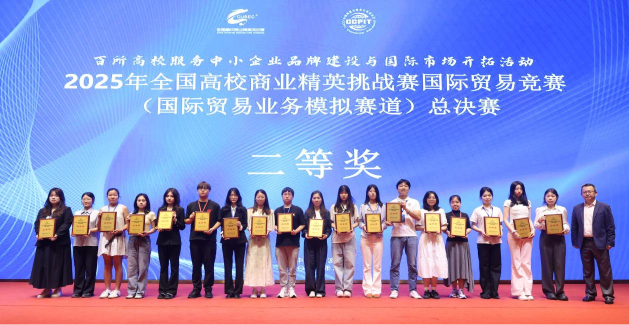 本网讯(特约记者/孙梦忆)6月6日至9日,2025年全国高校商业精英挑战赛国际贸易竞赛(国际贸易业务模拟赛道)总决赛在宁波落幕。本次国家级赛事由中国国际贸易促进委员会商业行业委员会主办,吸引全国198所高校408支队伍参赛。范蠡商学院代表队凭借扎实的专业能力、创新的展位设计与出色的商贸谈判表现,与众多高校激烈角逐,最终荣获全国总决赛二等奖1项、三等奖1项,并获得“最佳院校组织奖”。