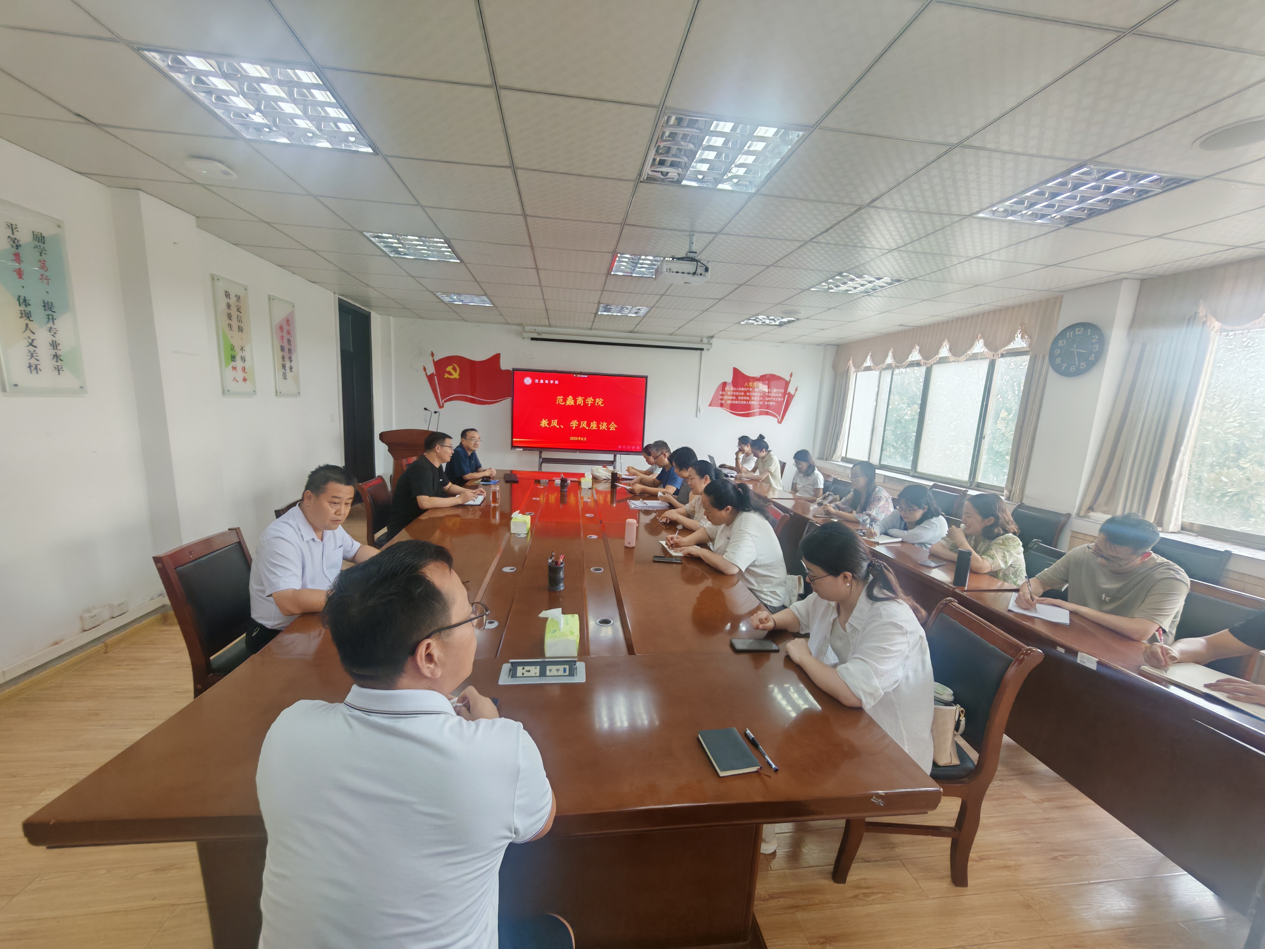 新学期启幕在即,为扎实推进“教风、学风”建设,8月29日下午,范蠡商学院在1331会议室召开教风、学风座谈会。学院院长郭永奇、党委副书记李冬生、各教研室教师代表、教学督导组成员、教务办相关人员参会。