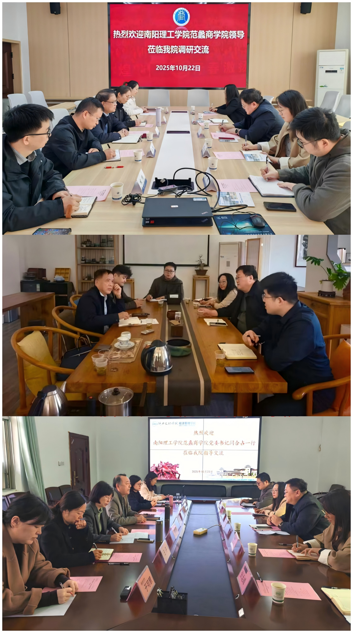 本网讯(特约记者/张运峰)为深入贯彻落实学校“十四五”规划要求,深化应用型商科人才培养模式改革,推进2026版人才培养方案修订与专业高质量发展,10月19日至23日,南阳理工学院范蠡商学院党委书记闫合占率队一行5人赴山东、湖北两省6所高校开展专题调研。调研组先后走访曲阜师范大学、山东交通学院、山东管理学院、武汉工程大学、汉口学院、湖北文理学院,围绕学科专业建设、应用型人才培养、课程体系优化、学风建设与产教融合等核心议题展开深度交流。