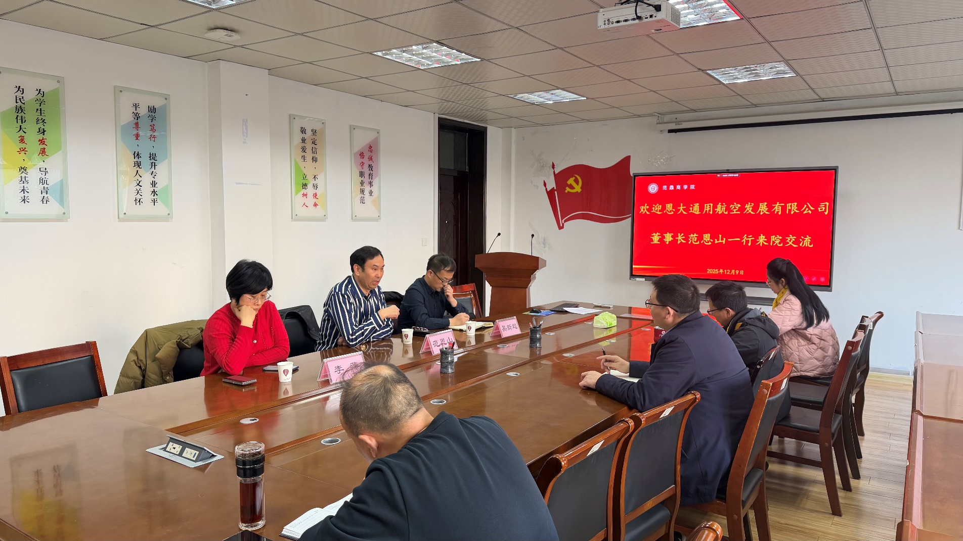 本网讯(特约记者/刘新飞)12月9日,恩大通用航空发展有限公司董事长范恩山、总经理吴新超一行莅临我院,范蠡商学院院长郭永奇、副院长周青浮及部分骨干教师参加座谈会,双方围绕低空经济人才培养、产业研究院建设等核心议题深入交流。