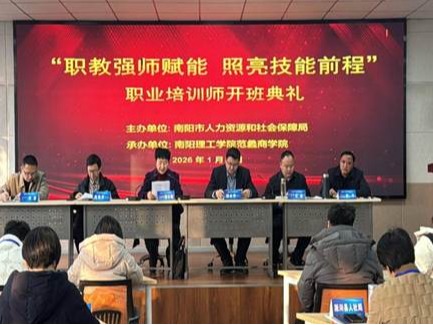 本网讯(通讯员/王君依)1月5日,由南阳市人力资源和社会保障局主办、南阳理工学院范蠡商学院承办的“职教强师赋能,照亮技能前程”职业培训师开班典礼顺利举行。来自南阳市各领域的职业教育从业者、技能培训骨干齐聚南阳理工学院,共同开启本次赋能培训。