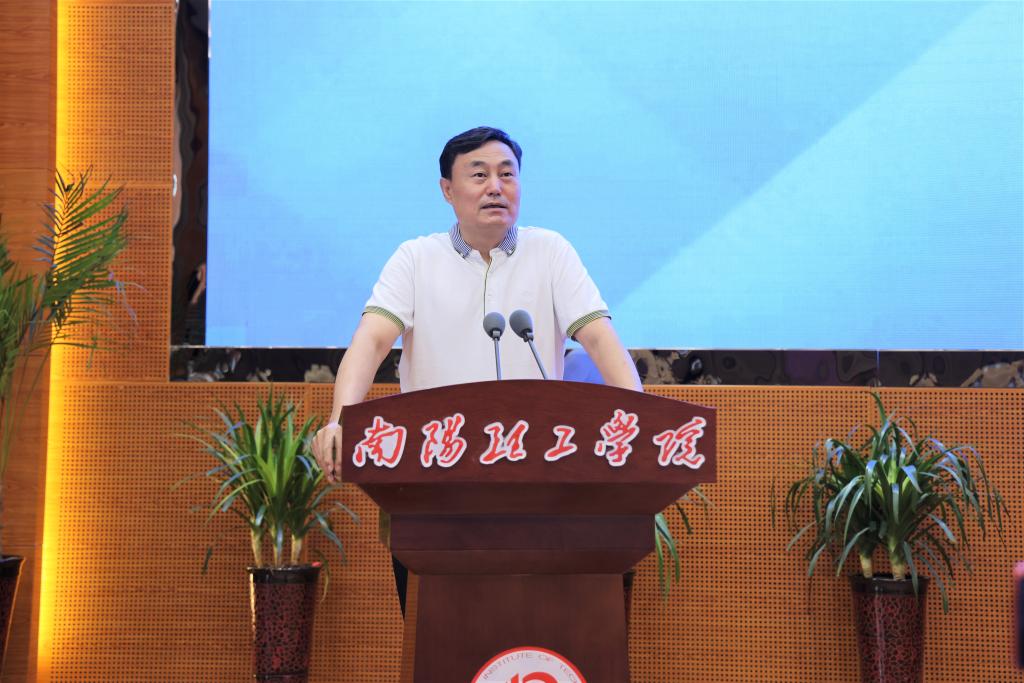 安士伟指出,学校始终坚持“为党育人 为国育才”,始终坚持“立本、立真、立特、立新”的办学理念,不甘示弱,埋头苦干,以10年一个台阶的发展速度,经过35年的不懈奋斗,已经成为南阳不可或缺、河南举足轻重、全国小有名气的应用型本科高校。他指出,商圣范蠡的经济文化非常丰富,范蠡提出的“劝农桑,务积谷”“农末兼营”“务完物、无息币”“平粜各物,关市不乏,治国之道也”“夏则资皮、冬则资絺、旱则资舟、水则资车,以待乏也”等经济思想对现代经济建设有积极的现实意义。他强调,文以载道,文以化人,作为商圣故里的高校,南阳理工学院以传承范蠡思想为己任,学习范蠡思想、研究范蠡智慧、弘扬范蠡精神、践行范蠡理念、扩大范蠡影响,学校注重范蠡思想的运用与实践,广大教师立足学校、创业南阳,积极参与南阳副中心城市建设。