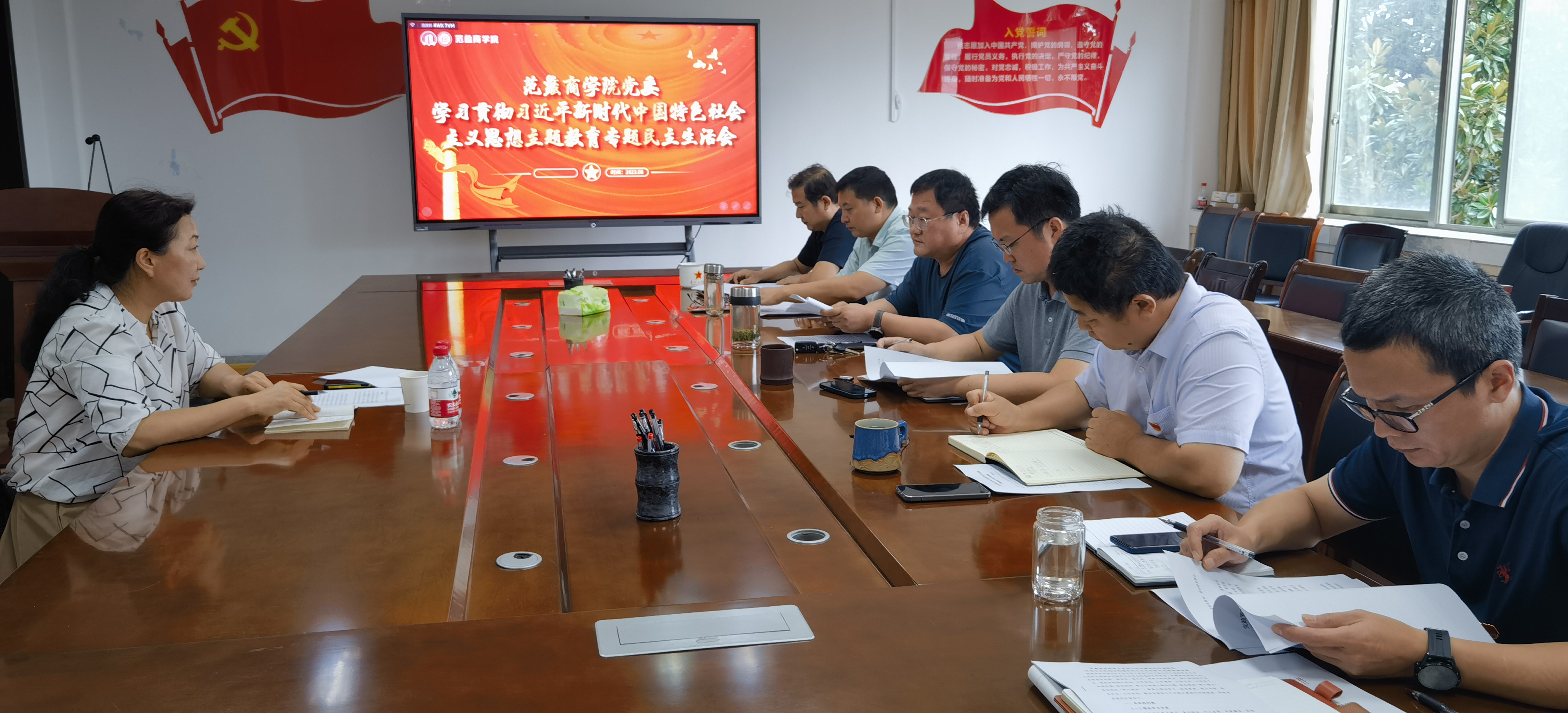 本网讯(特约记者/赵明铎)8月26日上午,范蠡商学院党委在1331会议室召开学习贯彻习近平新时代中国特色社会主义思想主题教育专题民主生活会。校组织部副部长李军参加,会议由范蠡商学院党委书记闫合占主持。
