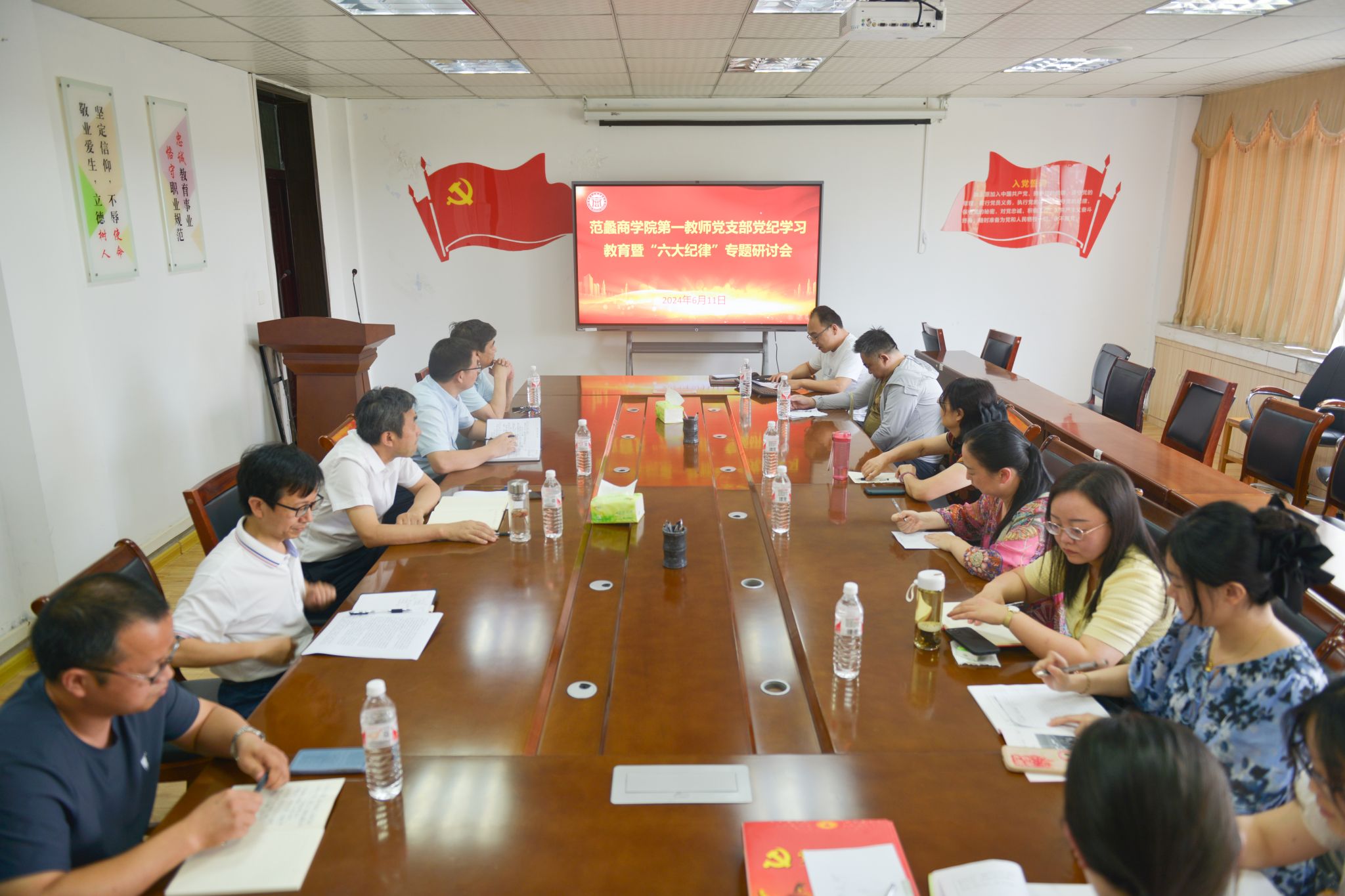 本网讯(特约记者/杜金柱)6月11日下午,校党委书记安士伟深入范蠡商学院第一教师党支部,调研指导支部开展《中国共产党纪律处分条例》“六项纪律”专题学习研讨。