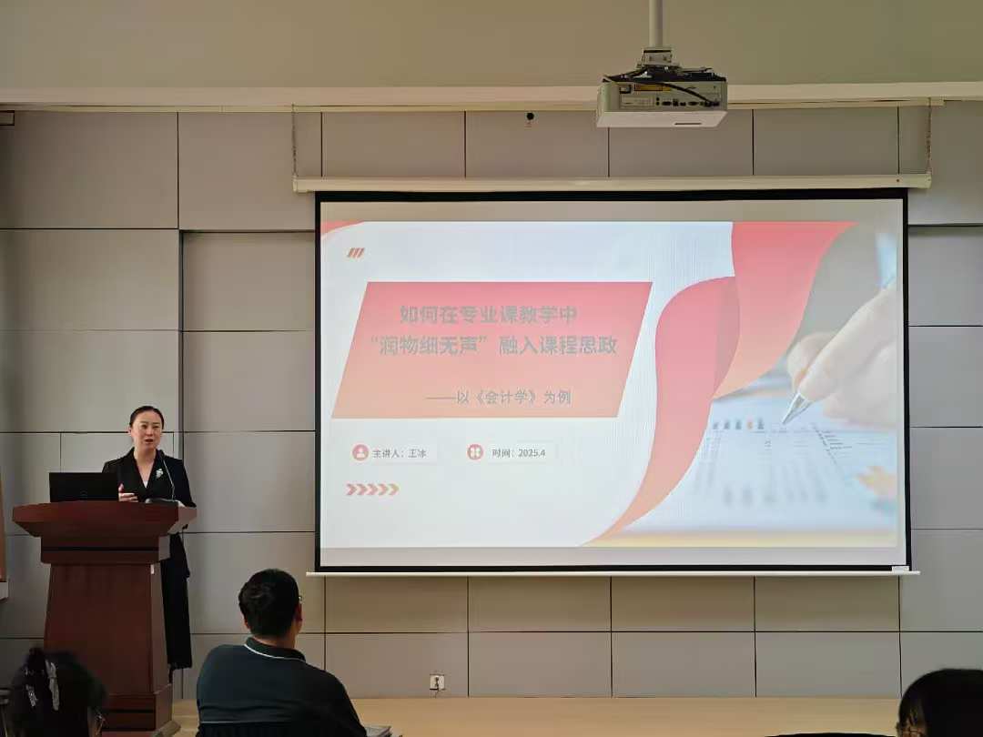 课上,王冰老师以会计学课程为例,从教学设计的源头出发,详细阐述了如何在课程目标设定、教学内容编排、教学环节设计等方面巧妙植入思政元素,使专业课程不仅成为知识传授的载体,更成为价值塑造的阵地。